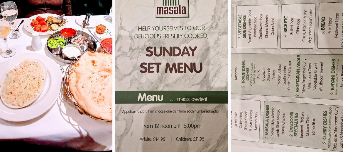 oh my life....I've been going to Mint Masala for years and enjoy all their food and keep going and I feel like I'm part of the furniture but today on Fathers day...my wife booked 4 of us in for the set menu and WOW WOW WOW! There was a lot of food and well priced. Service excellent as usual. Thanks Mint Masala...Best Fathers Day Experience Ever!